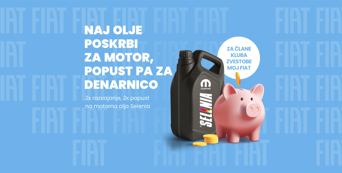 Obiščite pooblaščeni servis Fiat in izkoristite enkrat višji popust na motorna olja Selenia.