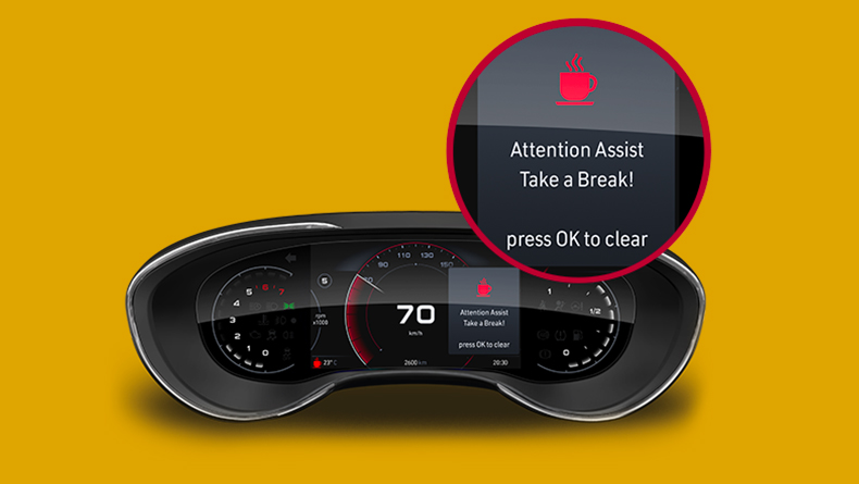 With speed limiter active it’s also possible to limit the car’s speed to the maximum allowed level read by the Traffic Sign Recognition system.